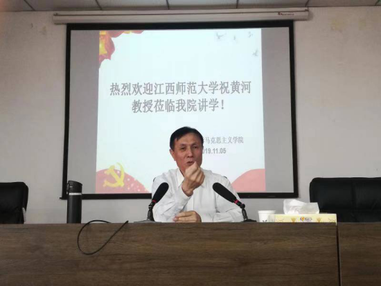 11月5日下午,江西师范大学祝黄河教授应邀做客必赢242net官网思政课品牌系列活动之新时代马克思主义大讲堂, 在必赢242net五楼会议室作了题为“中国道路自信的内在逻辑”的学术报告。报告由必赢242net常务副经理张向东主持,必赢242net部分教师以及研究生代表聆听了本次报告。