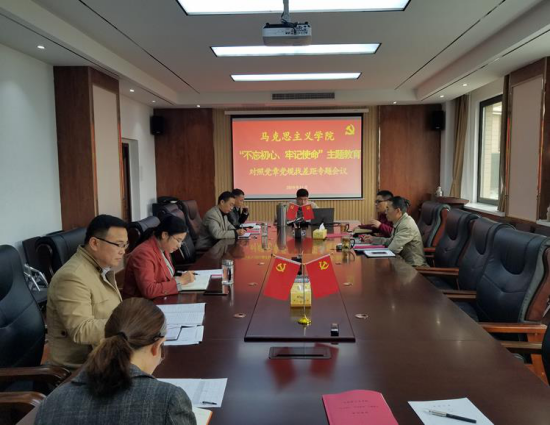 杨光辉传达了《“不忘初心、牢记使命”主题教育中加强爱国主义、弘扬爱国主义精神的通知》《关于专项整治不担当不作为问题的实施方案》《关于在“不忘初心、牢记使命”主题教育中对照党章党规找差距的工作方案的通知》等文件精神,并通报了学院领导班子按照学校主题教育实施方案,认真开展“四到四访”调研活动情况。随后,全体班子成员同时结合工作实际,对照党章、《准则》《条例》逐一进行对照检查,深刻剖析原因,列出问题清单,提出切实可行的整改措施和努力方向,确保主题教育落到实处。