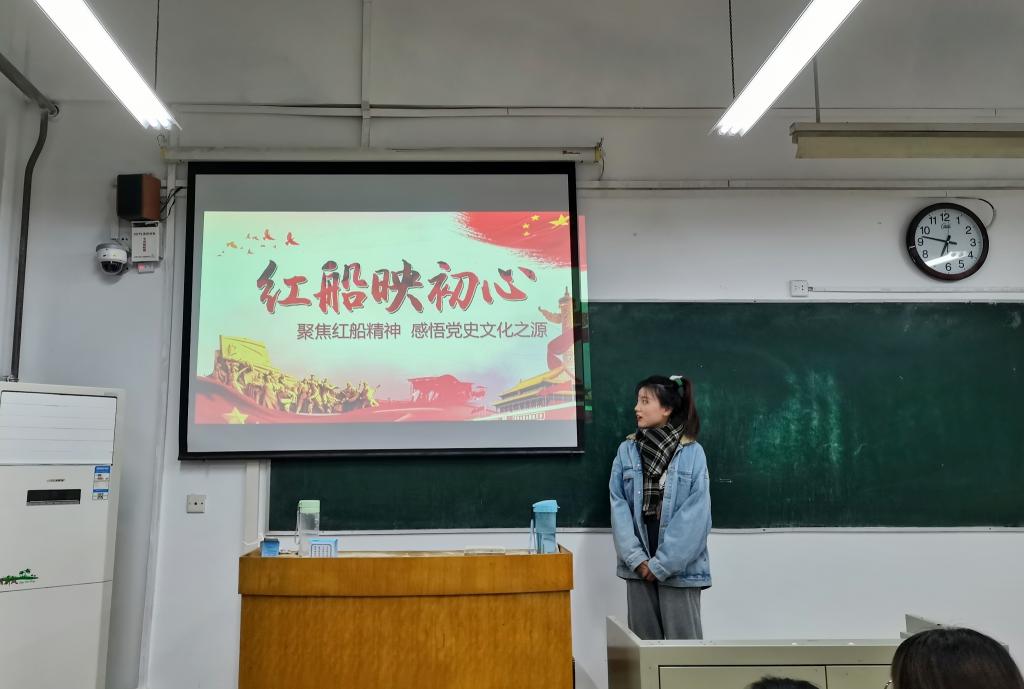 程诺以《聚焦红船精神,感悟党史文化之源》为题,从如何传承中国共产党人的初心与使命和红船精神怎样引领新时代脚步两个方面进行宣讲,让在场同学更加深刻感受到革命精神、革命文化是奋力实现中华民族伟大复兴的持久动力。刘淑嘉以《抗洪救灾中的青年力量》为题,讲述地铁中跪地救人医生于逸飞的故事,以小见大展现当代青年面对危险挺身而出的担当精神,呼吁在场同学要以实际行动响应习近平总书记 “时代的责任赋予青年,时代的光荣属于青年”的寄语,坚定理想信念,为全面建设社会主义现代化国家贡献青春力量。