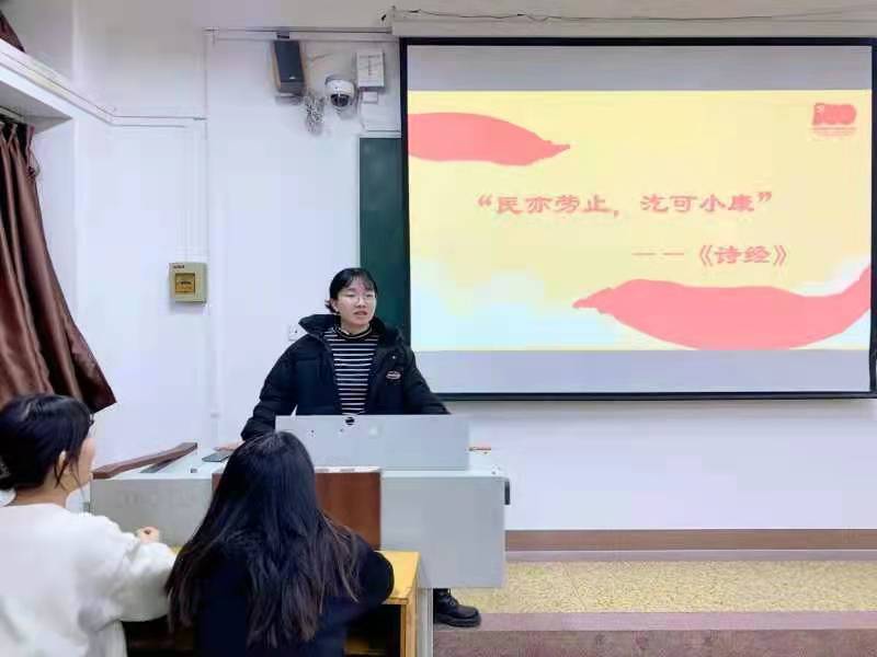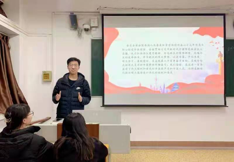 为进一步学习贯彻习近平新时代中国特色社会主义思想和党的十九届六中全会精神,12月9日晚上,必赢242net员工党员宣讲团成员2019级本科生杨耀宇、王丹婷和杨格格在综合楼208教室为2019级2班员工开展宣讲活动。