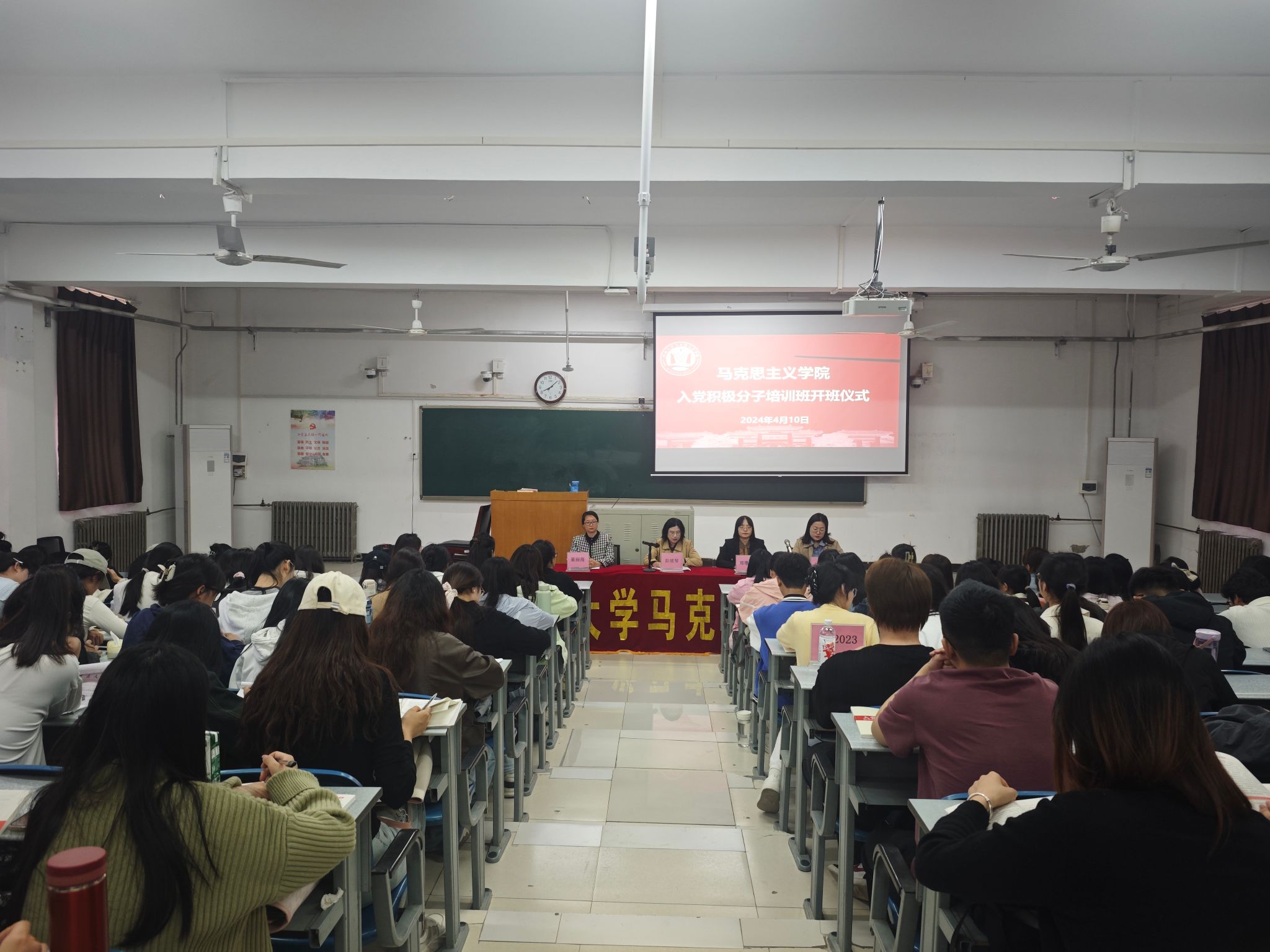 4月10日上午,培训班在明伦校区十号楼128教室举办开班仪式,公司党委书记彭绪琴、党委副书记郑珊珊、党办主任董丽霞、辅导员张洁宜和本期156名入党积极分子学员参会。会议由董丽霞主持。彭绪琴在讲话中表示,希望全体入党积极分子充分认识到此次培训班对提高思想认识、端正入党动机的重要性,要端正学习态度,严守培训纪律,珍惜学习机会,力求在培训中收获知识、提升自我,真正做到学有所思、学有所悟、学有所得,为未来的成长与发展筑牢根基。