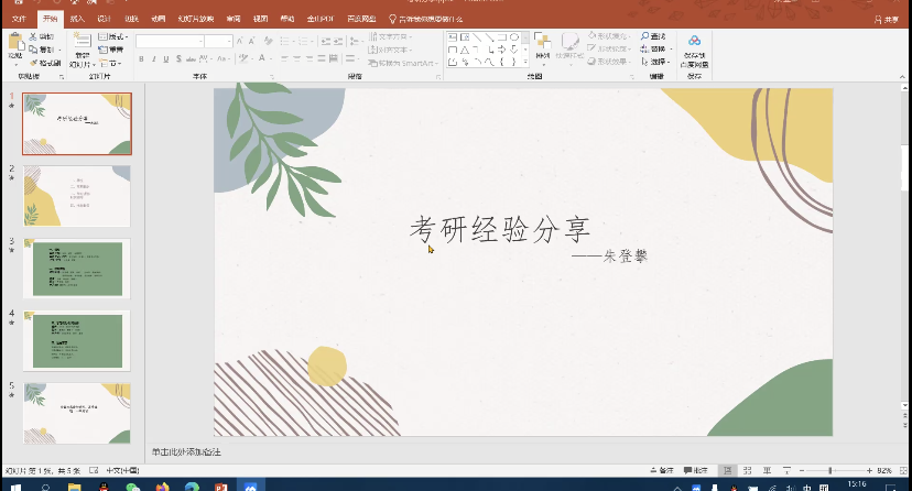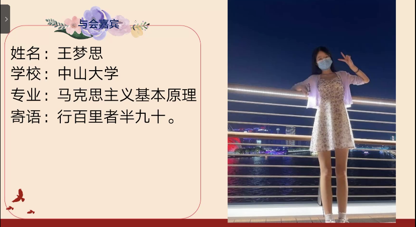 23日下午,五位17级本科生受邀以线上的形式分享了他们的考研经验。其中,崔占虎详细介绍了考研的流程,并从总体规划、院校选择、资料收集、心态调整等方面提出自己的见解和建议。赵宇琛则从确定学校专业、研究方向讲解了自己的看法,同时特别提醒同学们了解招生人数、招生分数的变动,并对相关注意事项作了强调。随后,连一从前期选择、中期备考、后期临考三个方面详细介绍了自己在考研备战中的经验教训,告诫同学们要把握好考试时间。王梦思表示,考研期间要合理规划复习时间,保持良好的心态,有条不紊地进行思维导图构建和考试模拟,并鼓励同学们及时关注国家时政。朱登攀就择校、前期准备、学习规划、注意事项四大模块提出建议,他还推荐了许多有关备战考研的网站和公众号,并从英语、政治、专业课三方面分享了自己的学习心得。