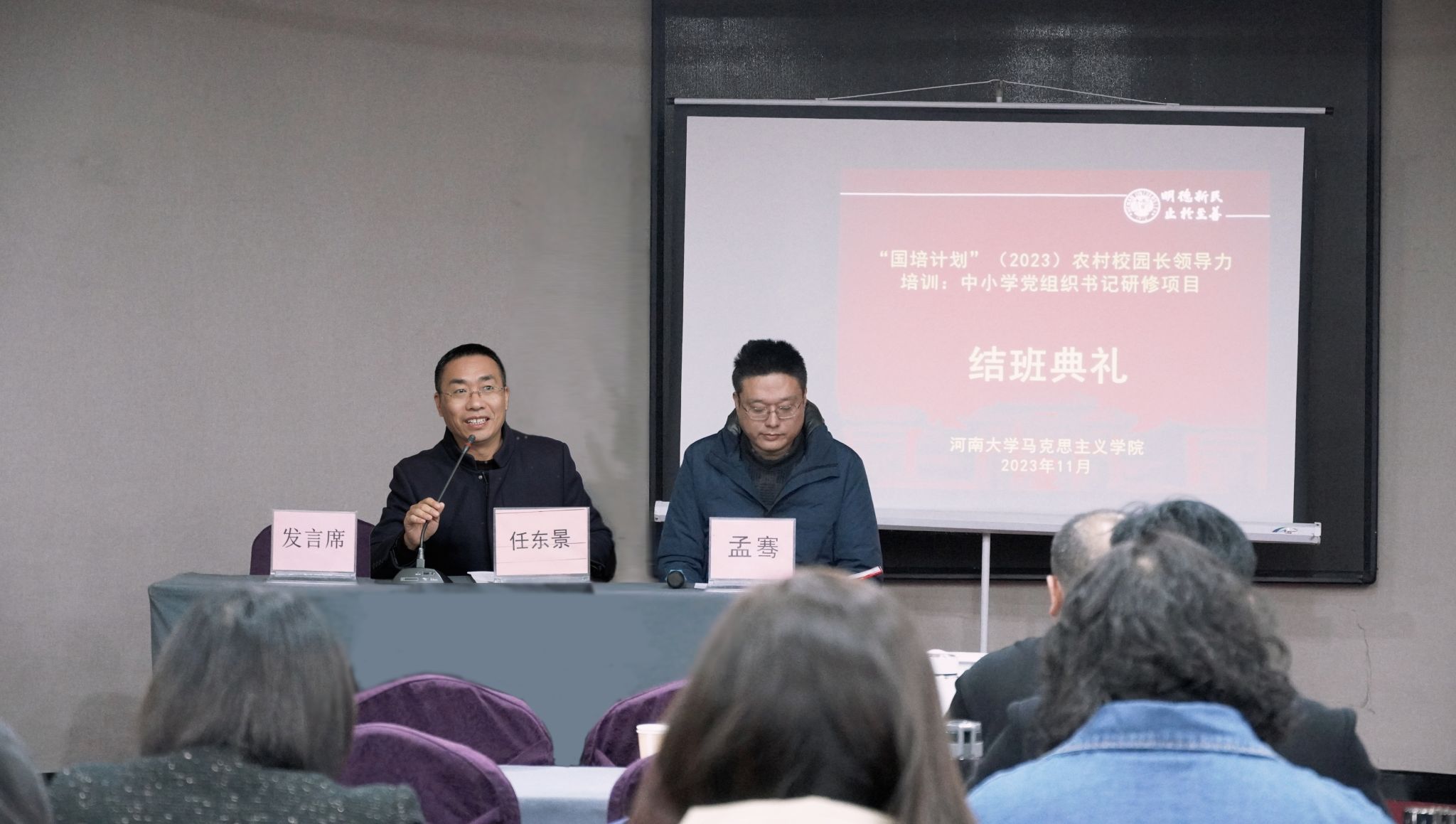 11月26日上午,河南⼤学“国培计划”(2023)农村校园长领导力培训:中小学党组织书记研修项目结业仪式在银祥酒店502会议室隆重举行,必赢242net经理任东景、副经理孟骞参加了结业仪式。结班仪式由孟骞主持。