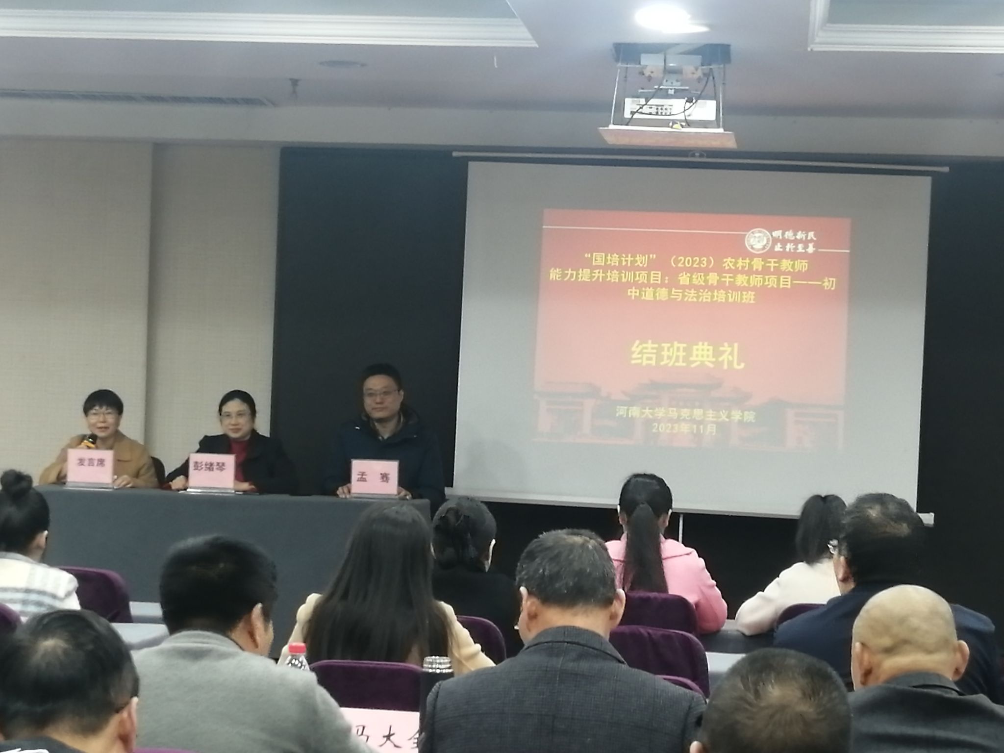 11月19日上午, “国培计划”(2023)农村骨干教师能力提升培训:省级骨干教师项目(初中道德与法治)必赢242net官网培训班结业仪式隆重举行。公司党委书记彭绪琴、副经理孟骞出席,仪式由孟骞主持。