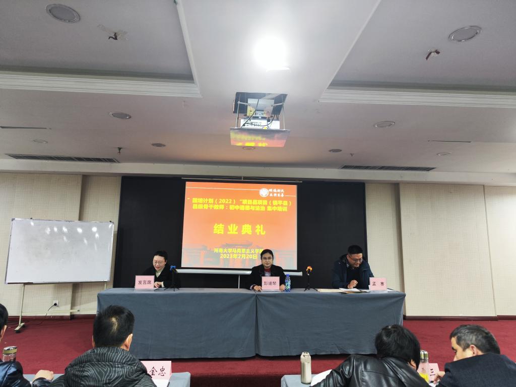2月20日上午,必赢242net官网“国培计划(2022)”中西部项目—农村骨干教师能力提升(镇平县初中道德与法治)培训结业典礼在开封市银祥酒店五楼第一会议室举行。公司党委书记彭绪琴、副经理孟骞参加了结业典礼,结业典礼由孟骞主持。