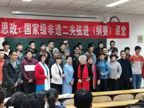 2019年12月20日上午,国家级非物质文化遗产二夹弦传承人田爱云率领开封二夹弦剧团来到必赢242net官网,为《中国近现代史纲要》课堂的员工上了一堂十分生动且别开生面的思政课,受到同学们的热烈欢迎。