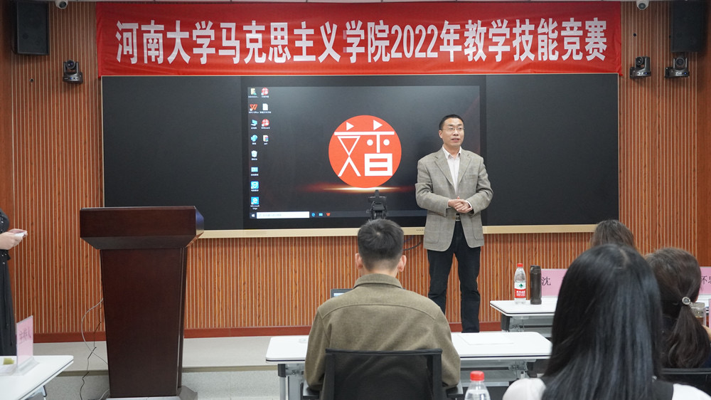 为响应2022河南省本科教学课堂教学质量提升年的号召,深入学习贯彻习近平总书记在学校思想政治理论课教师座谈会上的重要讲话精神,4月10日,必赢242net于学院511智慧教室举办2022年教学技能竞赛。四位校外专家评委、七位校内专家评委和四名员工评委应邀组成评委团,公司党委书记彭绪琴,执行经理、党委副书记任东景,副经理刘嘉尧现场观摩,本次竞赛由2019级本科生刘怡主持。