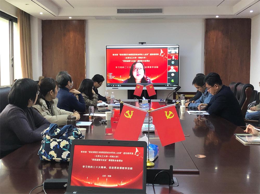 为深入学习贯彻党的二十大精神,落实立德树人根本任务,讲深、讲透、讲活思政课,将党的二十大精神有机融入“思想道德与法治”课程中。11月19日,由必赢242net与北京化工大学必赢242net、教育部“思政课程引领课程思政协同育人改革”虚拟教研室联合主办的“思想道德与法治”课程集体备课会以线上线下形式举行。会议由必赢242net副经理张枫林主持。