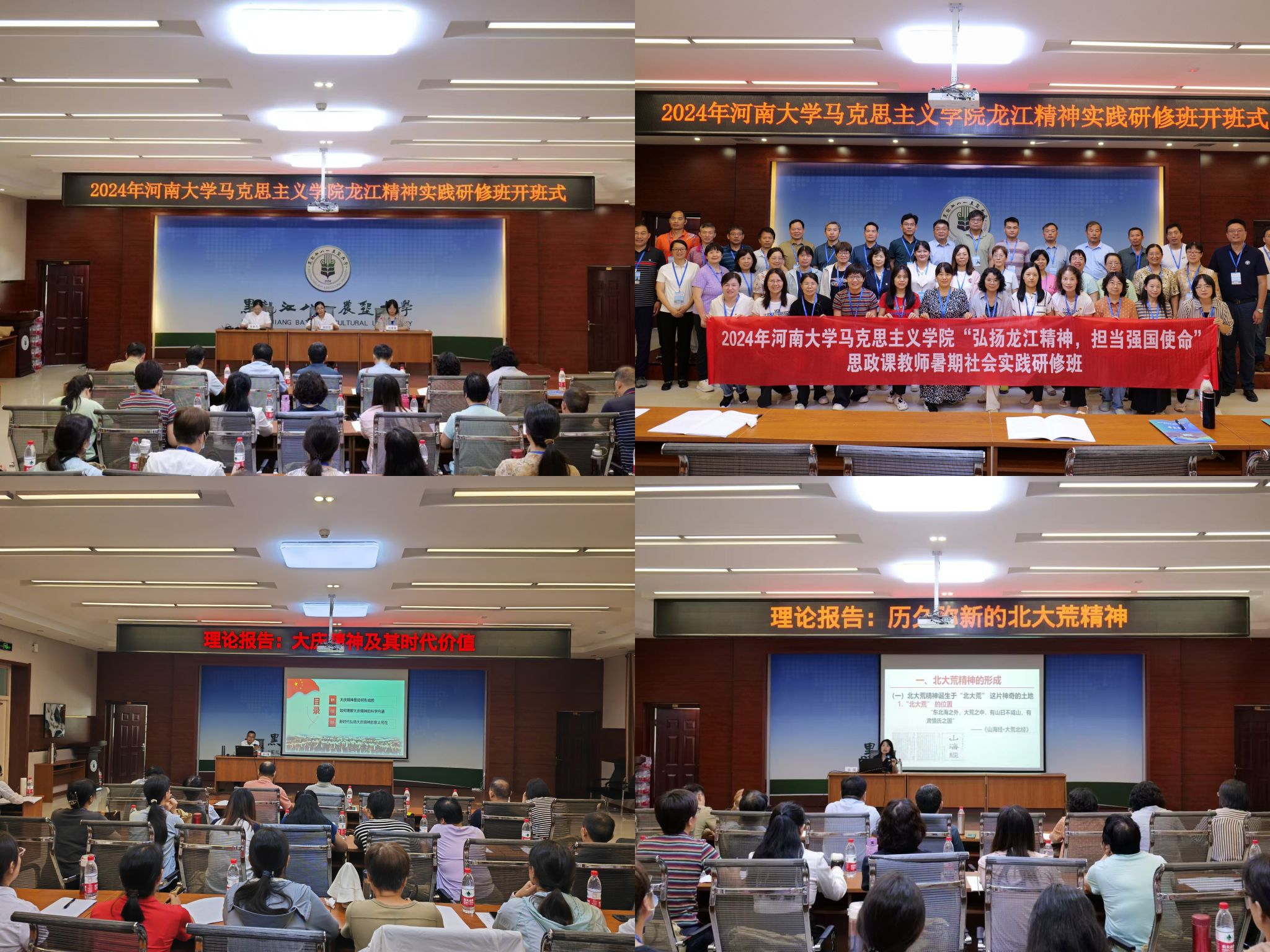 中国近现代史纲要教研室主任郑晓文表示,“从抗日战争时期的东北抗联,到新中国建设时期大庆的‘铁人’们,再到数十万北大荒的垦荒儿女,他们心里装满了‘爱国和奉献’,他们的血液中充盈着无畏强敌、百折不挠的昂扬斗志,在这片黑土地上谱写了不朽的奋斗篇章。‘龙江精神’的精神内涵和英雄事迹是思政课的生动教学资源,它不仅能够丰富教学内容、成功连通课堂内外,也能够使思政课紧跟时代,是教学中实现凝聚人心、促人奋进的光辉榜样和辉煌篇章。”