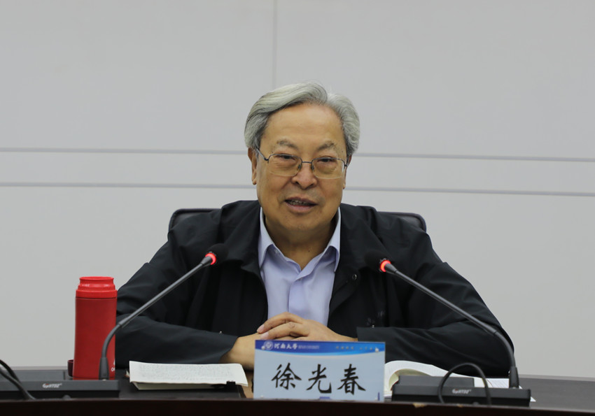 徐光春强调,办好思想政治理论课意义重大,它是培养一代又一代社会主义建设者和接班人的重要保障,同时也是学校意识形态工作的重要前沿阵地;办好思政课的最终目标是要开展马克思主义理论教育,以新时代中国特色社会主义思想铸魂育人。徐光春以清晰的思路、精炼的语言将讲话中的“四个提供”“三个坚持”“一个加快”“两个培养”以及教师“六个要素”、思政课“八个统一”进行了深入阐述。他特别强调,要将习近平总书记的讲话精神学习研究透彻,最重要的是要将其落实落地,取得实际成效;作为领导、学科带头人,要有信心、有魄力把党关于思政课的政策方针贯彻落实到位。