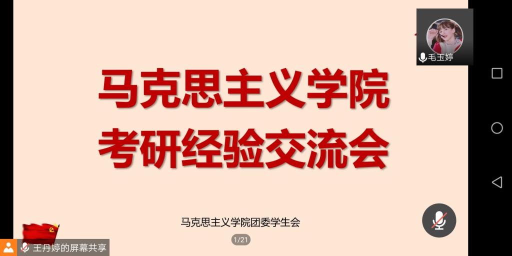 在经验分享环节,现就读于南开大学思想政治教育专业的毛玉婷分享了真题复习和答题时间分配的经验,并以南开大学为立足点,为同学们讲解了考研题型和参考书目。