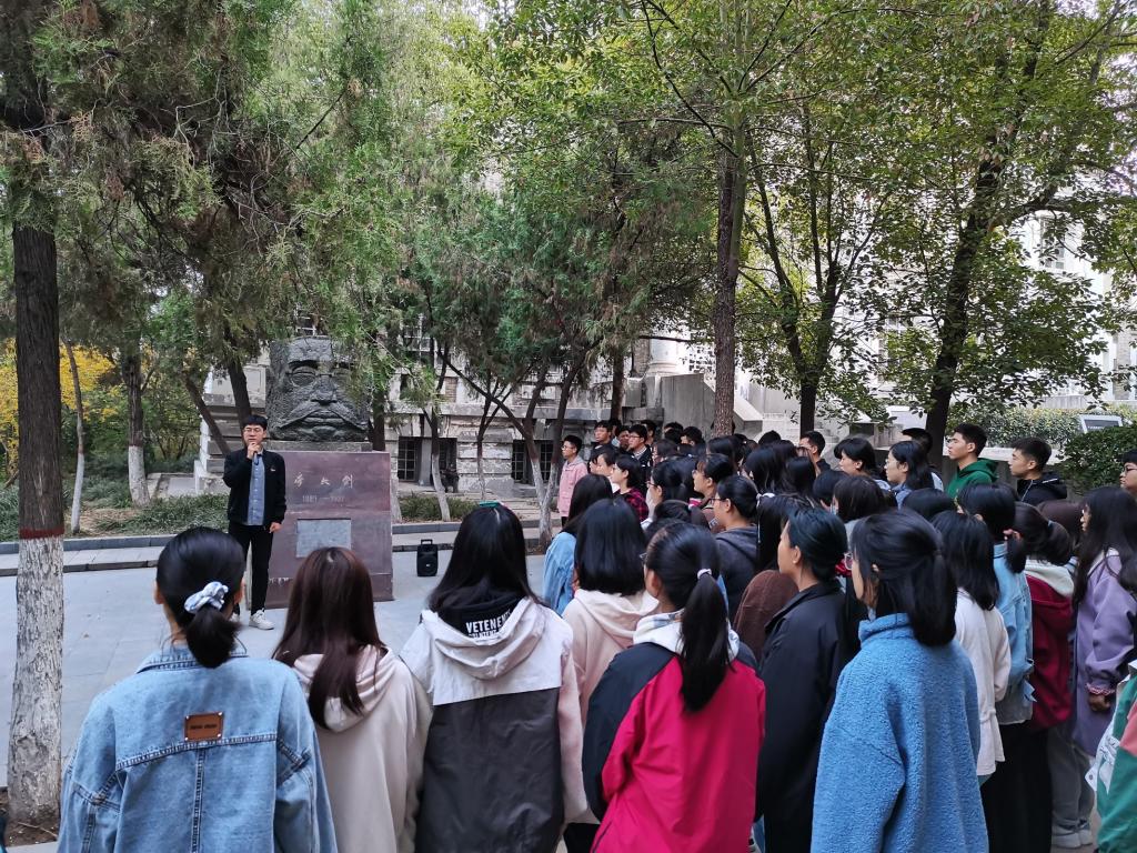 2020级本科生赵帅宇带领2020级本科生瞻仰革命先驱李大钊雕像,并表示将永远铭记、永远感激、永远缅怀那些为民族独立、人民解放做出不朽贡献的革命先烈。同时,他号召同学们继承弘扬伟大抗美援朝精神,锤炼意志、磨练品性、提高素质,做到知难而进,坚韧向前。
