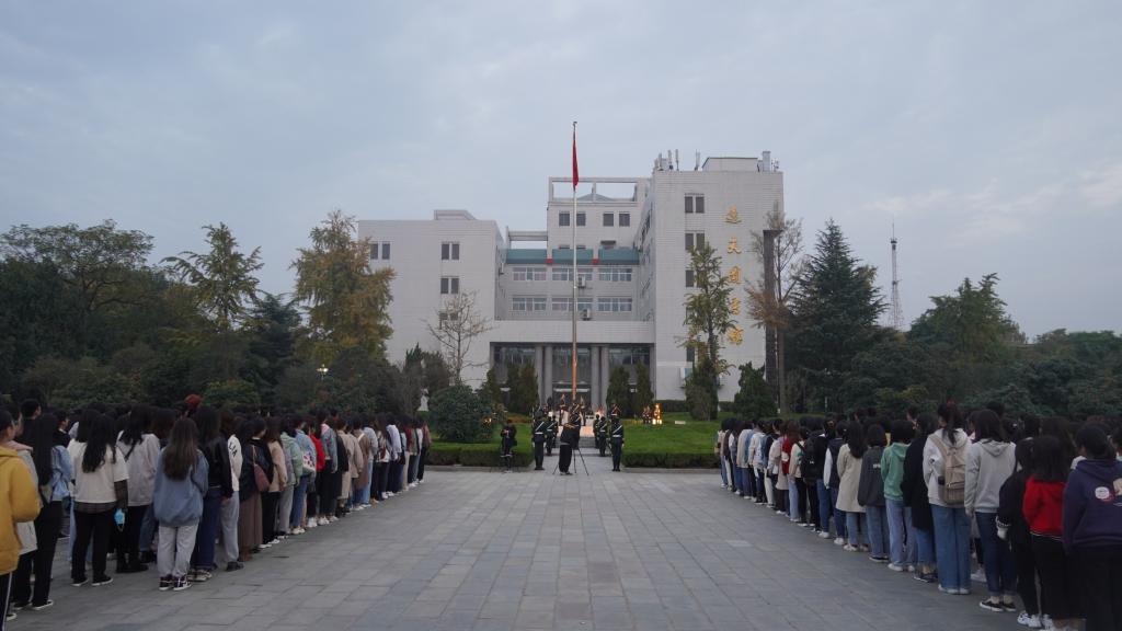 清晨,身披微光,学院全体本科生在大礼堂广场西侧集合完毕。仪仗队迈着整齐的步伐,护卫着国旗入场。伴着庄严嘹亮的《中华人民共和国国歌》,五星红旗冉冉升起,在场师生全体肃立,并行注目礼。升旗仪式完毕后,员工代表邵嘉曌在国旗下作题为《热爱祖国,青春有我》的发言。她讲述了在抗美援朝中,中国人民志愿军保卫祖国、守护和平的壮举,并鼓励思政学子练就过硬本领,做不负使命的时代新人。