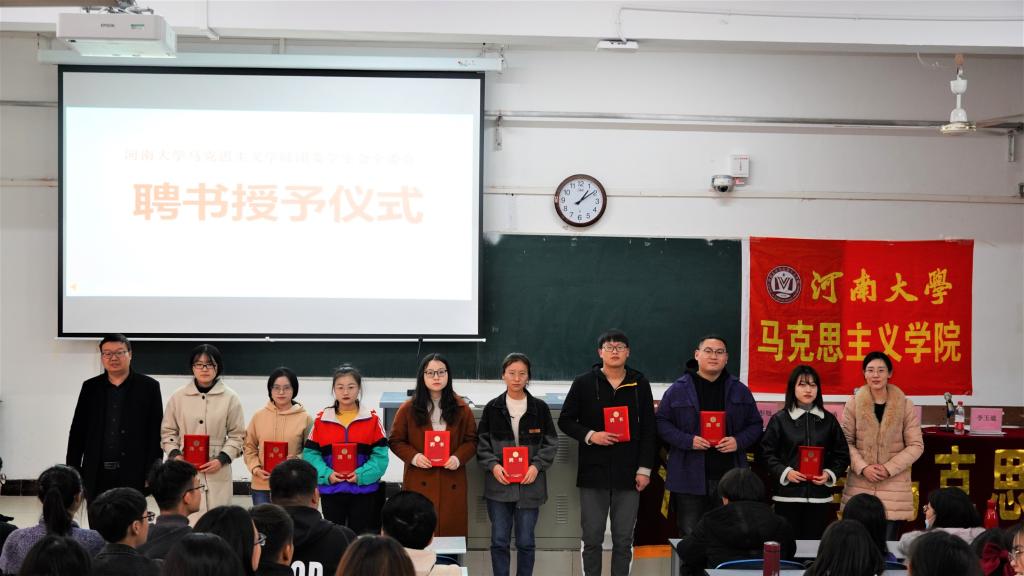 吴涛和吕梦函为2019-2020学年团委员工会主席团、部长层颁发聘书。最后,吴涛从坚持一个中心、发挥四个作用、实现两个目标三方面进行总结发言。他强调要抓住关键,围绕人才培养这一中心开展员工会工作,要发挥思想引领、参谋、桥梁和表率作用,鼓励大家在学习生活中勤俭节约、团结协作,提高自身的综合素质,实现为员工、为学院工作服务的目标。会议在中国共青团团歌声中落下帷幕。