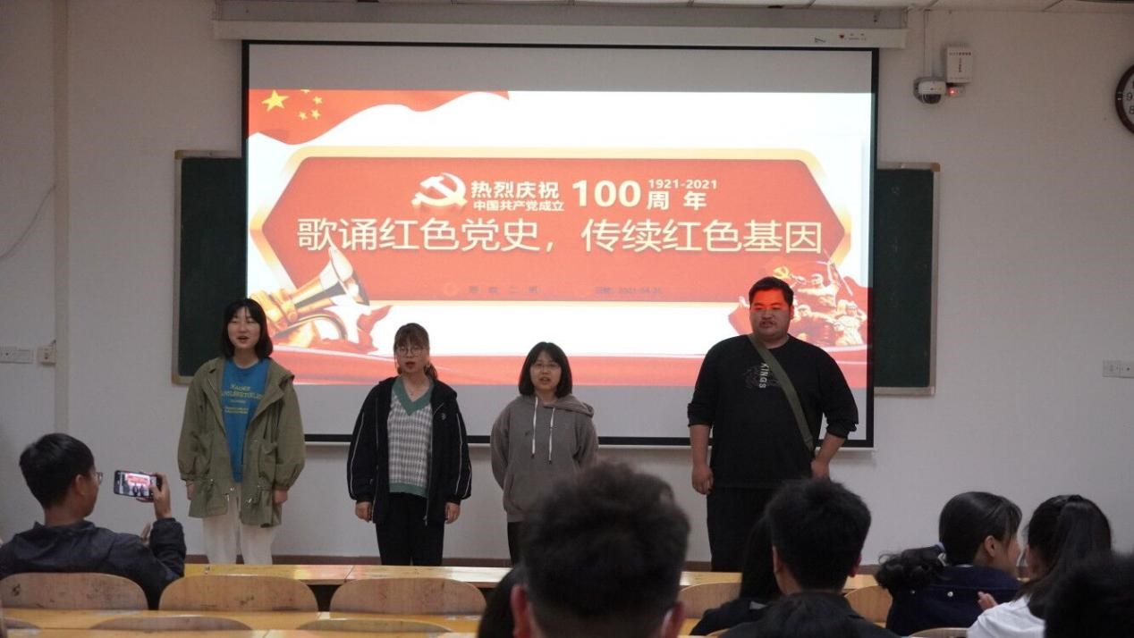 为庆祝中国共产党成立100周年,增强员工党史学习的实效性,4月25日下午,必赢242net本科生2002班在综合楼109教室举办了以“歌诵红色党史,传续红色基因”为主题的班级文艺比赛。必赢242net2020级辅导员姜南受邀出席活动,2020级年级长赵帅宇、2002班全体同学参加。本次活动由班长朱依凡主持。
