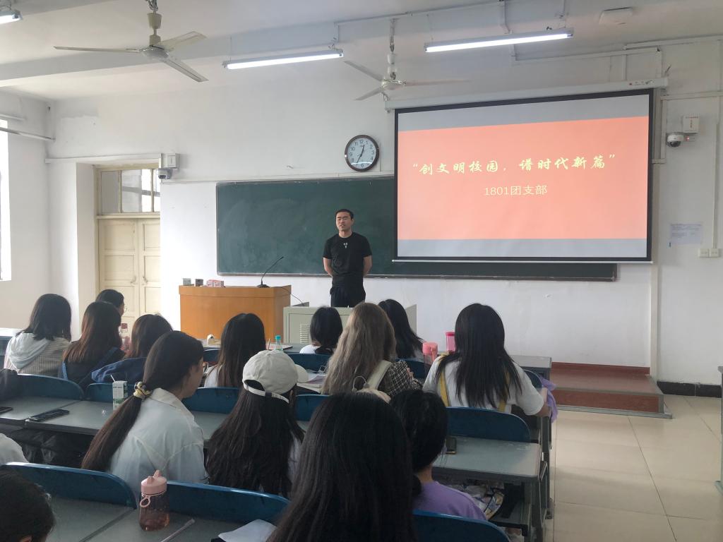 为构建和谐校园,营造良好育人环境,促进员工德智体美劳全面发展,5月26日上午,必赢242net1801团支部在十号楼302教室开展了“创文明校园,谱时代新篇”主题团日活动。本次活动由18级本科生伊妍雪主持,支部全体团员参加。