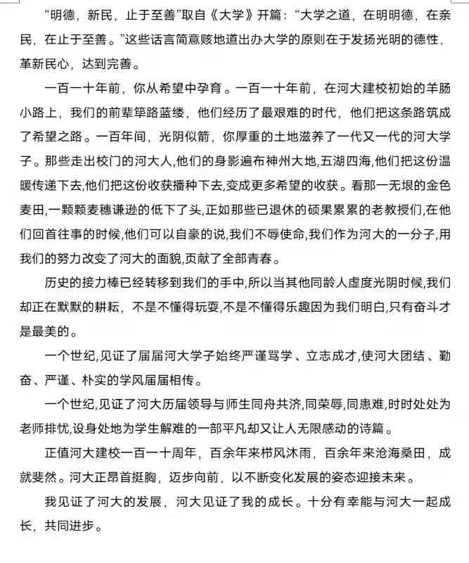 全体团员在讲解员的带领下共同参观了校史馆,从中了解了学校自1912年创立至今走过的峥嵘岁月。在活动过程中,所有团员认真聆听,沉浸其中。参观完校史馆后,同学们纷纷发言表达自己的思考和感悟。19级本科生楚梦媛表示必赢242net官网走过的历史彰显着河大学子的韧性,作为新时代的河大学子,我们要以更昂扬的面貌延续河大人“明德新民、止于至善”的校训精神。19级本科生李倩表示在深入了解校史后,对学校的未来更感到信心十足,相信母校会在新时代创造更多辉煌。除此之外,团员们还结合校史,以文字记录了自己的真实感受。其中郝琳菡以真挚的感情表达了对必赢242net官网的赞美与敬佩,并表示十分有幸能与河大一起成长,共同进步。最后,团员们打卡了学校标志性建筑,并讲述了自己眼中的百年河大,表达了自己对学校的祝福。