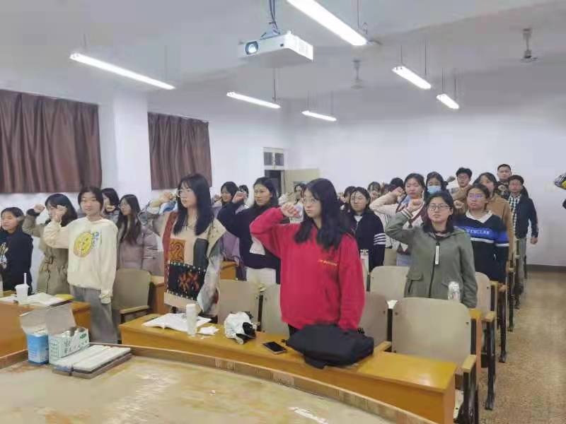 活动伊始,在包羽鸣的带领下,全体团员观看了习近平总书记在庆祝中国共产党成立100周年大会上的讲话视频以及青年代表献词朗诵视频,认真聆听了习近平总书记对青年人的殷切嘱托,共同学习了共青团员和少先队员代表们集体献词原文。支部团学习小组三组组长温柳婷在交流与讨论环节表示,当代青年要胸怀千秋伟业,不负习近平总书记殷切嘱托,一心为团、忠心向党。2020级本科生梁文镯则分享了自己暑期在家乡驻马店做防汛抗疫志愿者的经历,表示这种志愿服务经历让自己更加深刻地认识到了“强国有我”的含义。讨论结束后,支部团员全体起立,庄严宣誓。最后,同学们纷纷在“请党放心,强国有我”的标语纸上签字,并表示将不负时代、努力学习,为祖国建设添砖加瓦,为实现新时代党赋予的历史使命而努力奋斗。