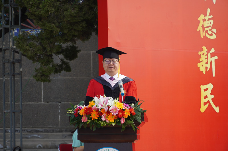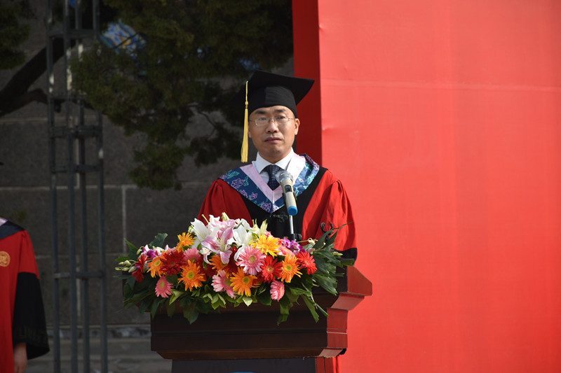 星河徜徉,一路有光。学院执行经理任东景代表学院向毕业生表示最热烈的祝贺,向辛勤培育的老师表示最诚挚的感谢。他表示,过去四年学院取得的历史性新成就是全院师生齐心协力、团结拼搏、接力奋斗的结果,向大家的辛勤付出表示感谢。最后,他向毕业生提出三点希望:一是希望同学们牢记校训院训,努力成为堪当民族复兴重任的时代新人;二是希望同学们与历史同向、与祖国同在、与人民同行,在青春的赛道上奋力奔跑出最好的成绩;三是希望同学们心有所畏、言有所戒、行有所止,积极投身崇德向善的道德实践,引领向上向善的社会风气和良好的社会风尚。