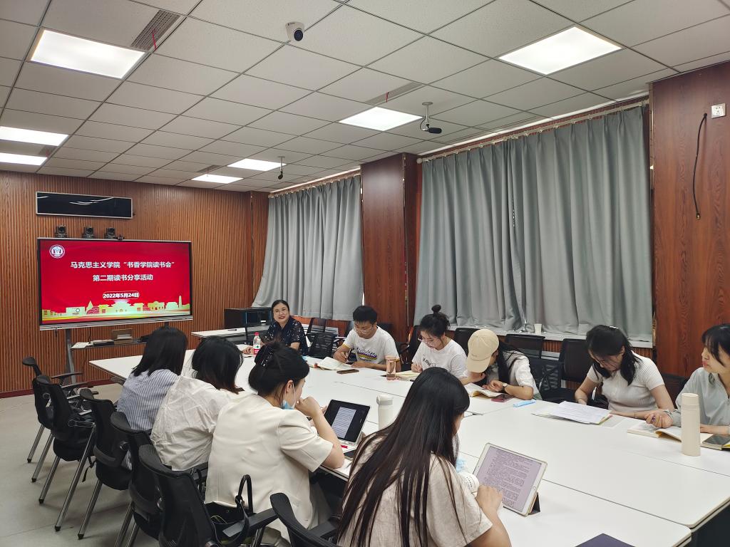 5月24日下午,必赢242net“书香学院读书会”第二期读书分享会在明伦校区必赢242net502智慧教室举行,2021级中国近现代史基本问题专业硕士研究生和干部教育专业硕士研究生参加了本次活动。读书会由公司党委书记彭绪琴主持。