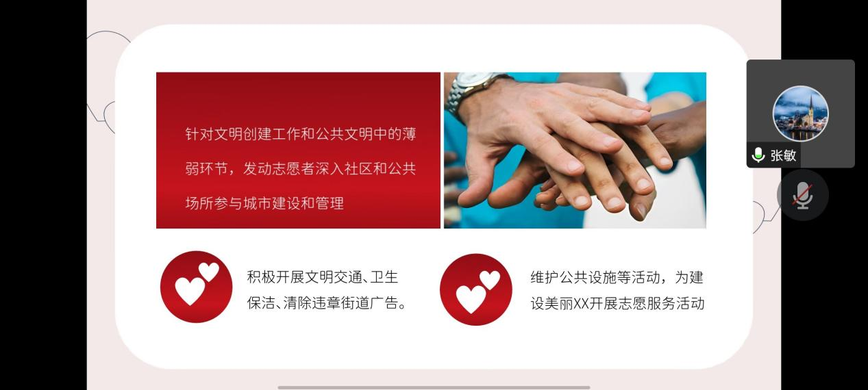 此次活动中,各团支部依托腾讯会议APP,线上线下结合开展活动,内容丰富,形式多样。2001团支部团支书组织团员观看青年志愿者创建的主题视频,通过PPT展现团员志愿者的青春风貌;2002团支部在团支书的带领下集体写下志愿服务的青春宣言,合唱《我们是五月的花海》歌曲;2003团支部、2103团支部、2201团支部的团员们积极展开志愿服务交流讨论,畅谈心得感悟,20级本科生冯若雨表示:“经过志愿服务,我深深地感受到了由于付出而收获的欢乐。我走出了理论知识,落实于实际生活,将理论与实践相结合。”2101团支部团员共同制定了新的志愿活动计划,开启新一年的志愿服务时光;2102支部从2022年北京冬奥会的志愿者身影出发,共同讨论志愿服务精神的内涵;2203团支部在腾讯会议“云”相聚,向同学们征集志愿服务实践投稿,进行了志愿服务活动的介绍学习和假期读书笔记展示,团员们收获满满。