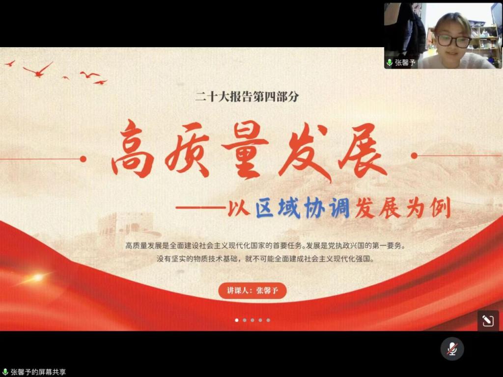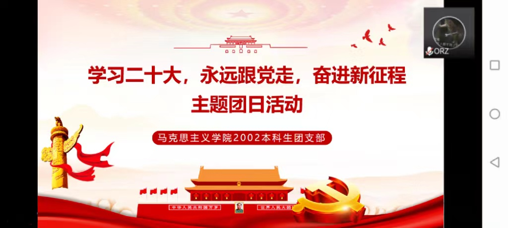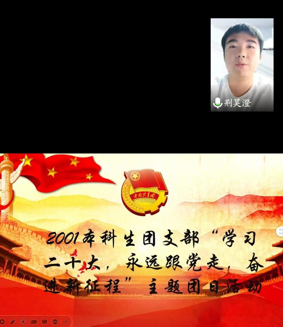 此次活动内容丰富,形式多样。2001本科生团支部以线上会议的形式组织团小组成员分享自己对二十大报告的学习感悟;2002本科生团支部以PPT的形式学习了党的二十大重要精神;2003本科生团支部组织支部全体成员观看了学习宣传党的二十大精神直播及专题视频;2101本科生团支部组织团员青年在线分享阅读报告的感想;2103本科生团支部集体观看中国共产党第二十次全国代表大会新闻发布会共同研读和讨论党的二十大报告;2203本科生团支部征集并展示了同学们学习党的二十大精神学习笔记。