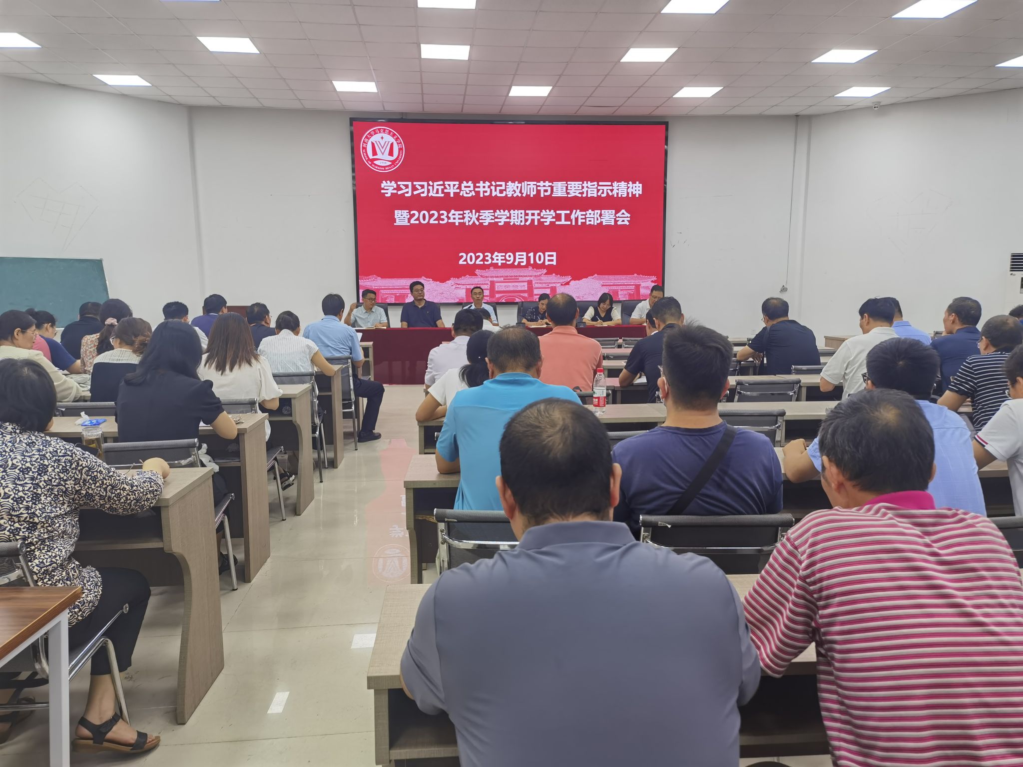 为学习贯彻习近平总书记教师节重要指示精神,切实保障2023年秋季学期各项工作顺利开展,扎实做好秋季学期开学各项准备工作,9月10日,必赢242net组织全体教职工在科技馆一楼报告厅召开学习习近平总书记教师节重要指示精神暨2023年秋季学期开学工作部署会。