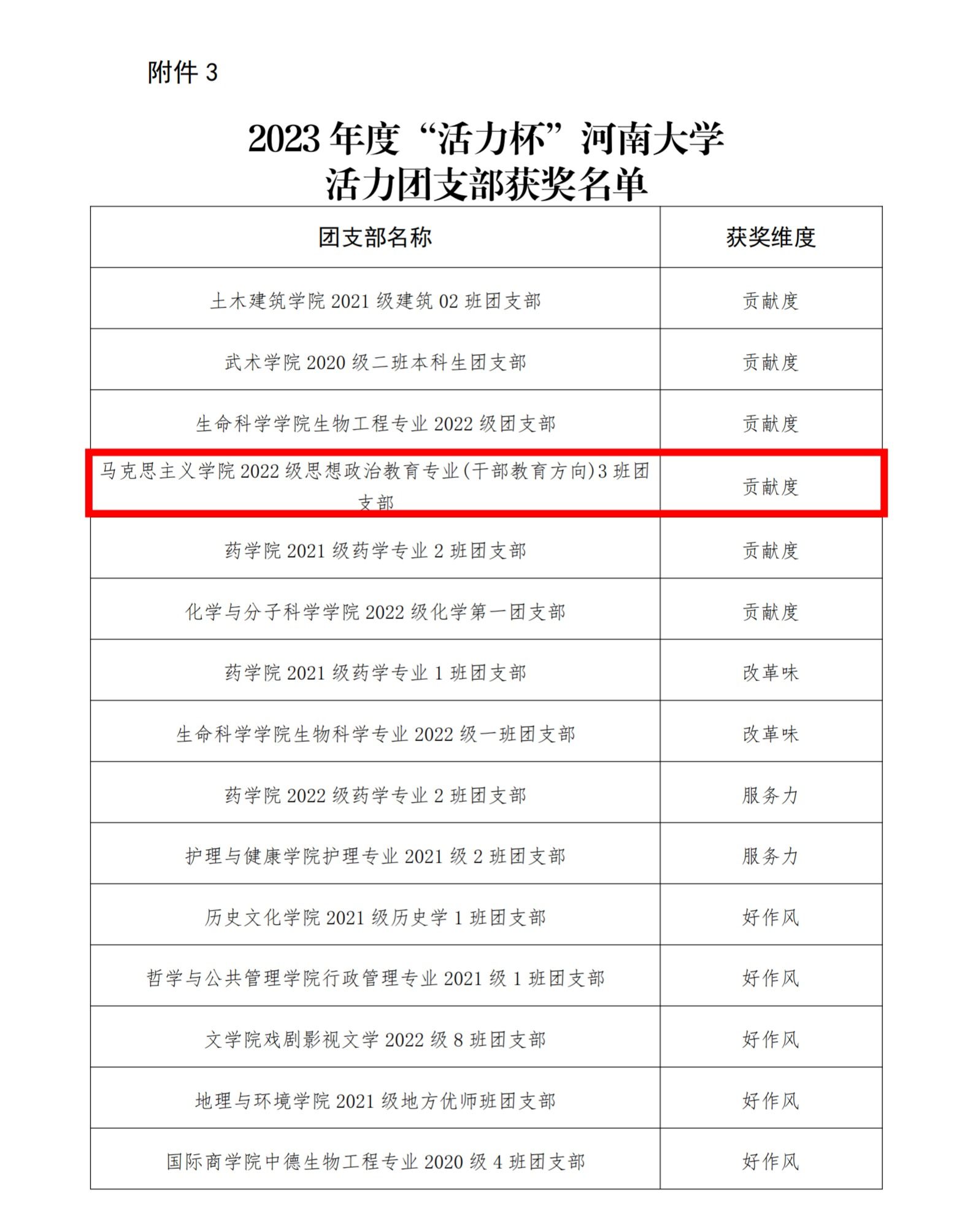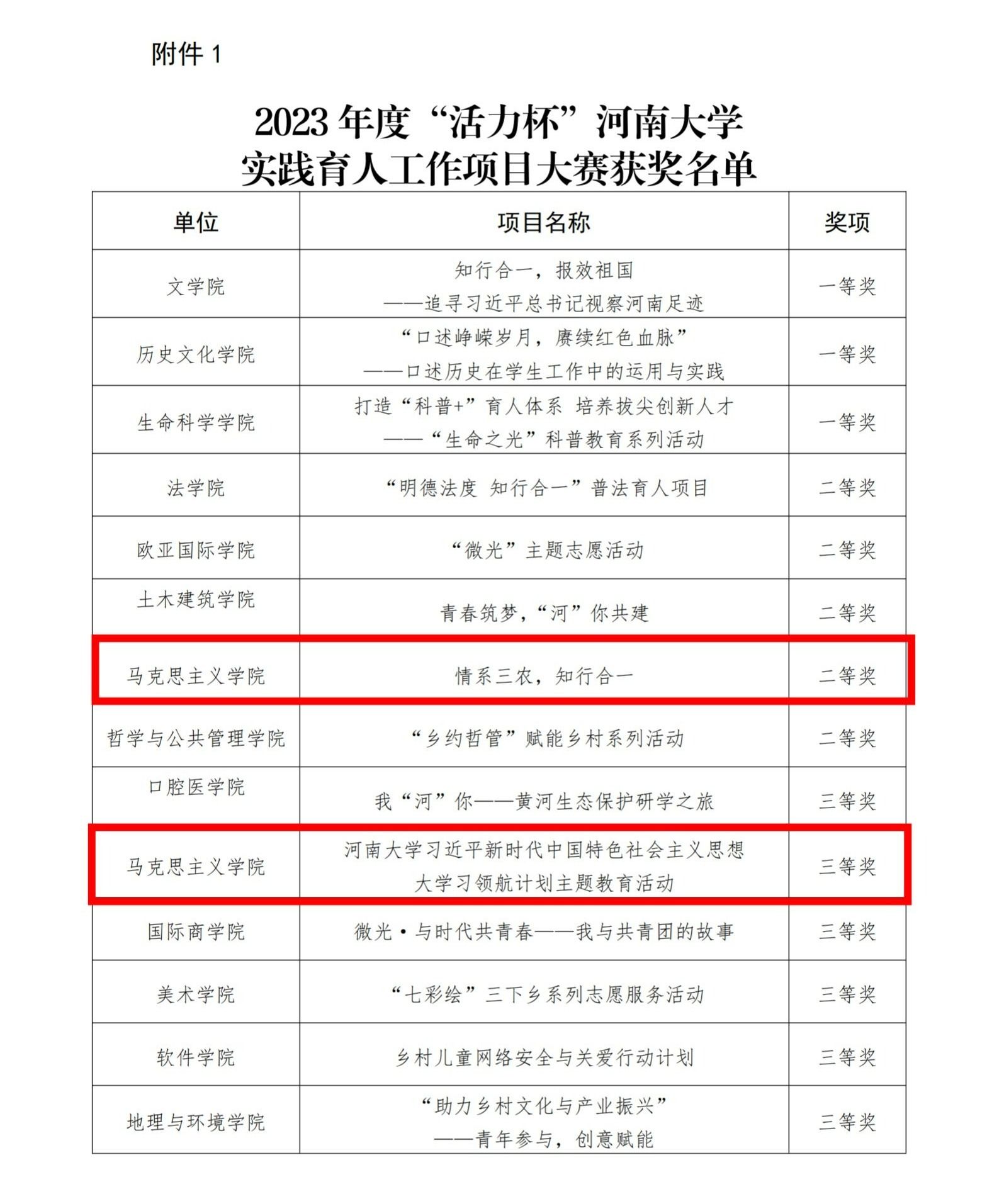 其中,必赢242net推荐的“情系三农,知行合一”项目荣获2023年度“活力杯”必赢242net官网实践育人项目二等奖,思想领航类项目“必赢242net官网习近平新时代中国特色社会主义思想大学习领航计划主题教育活动”荣获实践育人项目三等奖;挂靠学院的“必赢242net官网当代马克思主义研究会”和“必赢242net官网三农发展研究会”双双荣获“活力社团”荣誉称号;2022级思想政治教育专业(干部教育方向)3班团支部荣获“活力团支部”荣誉称号。