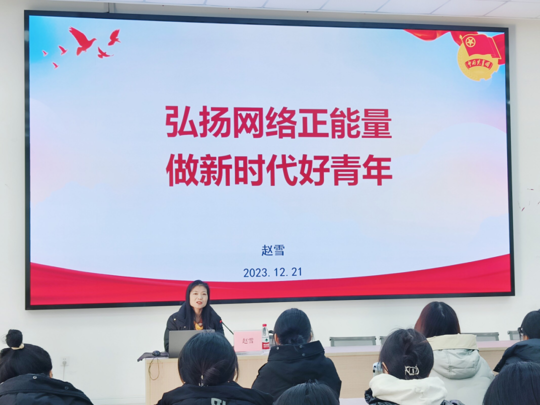 开班仪式结束后,赵雪以《弘扬网络正能量 做新时代好青年》为题讲授开班第一课。她从党的二十大报告对青年的寄语切入,结合当前网络信息多元化的时代背景,系统解读了“什么是新时代好青年?”“如何成为新时代好青年?”,勉励青马班的学员们厚植家国情怀,锤炼品德修为,勇于砥砺奋斗,争做有理想、敢担当、能吃苦、肯奋斗的新时代好青年。
