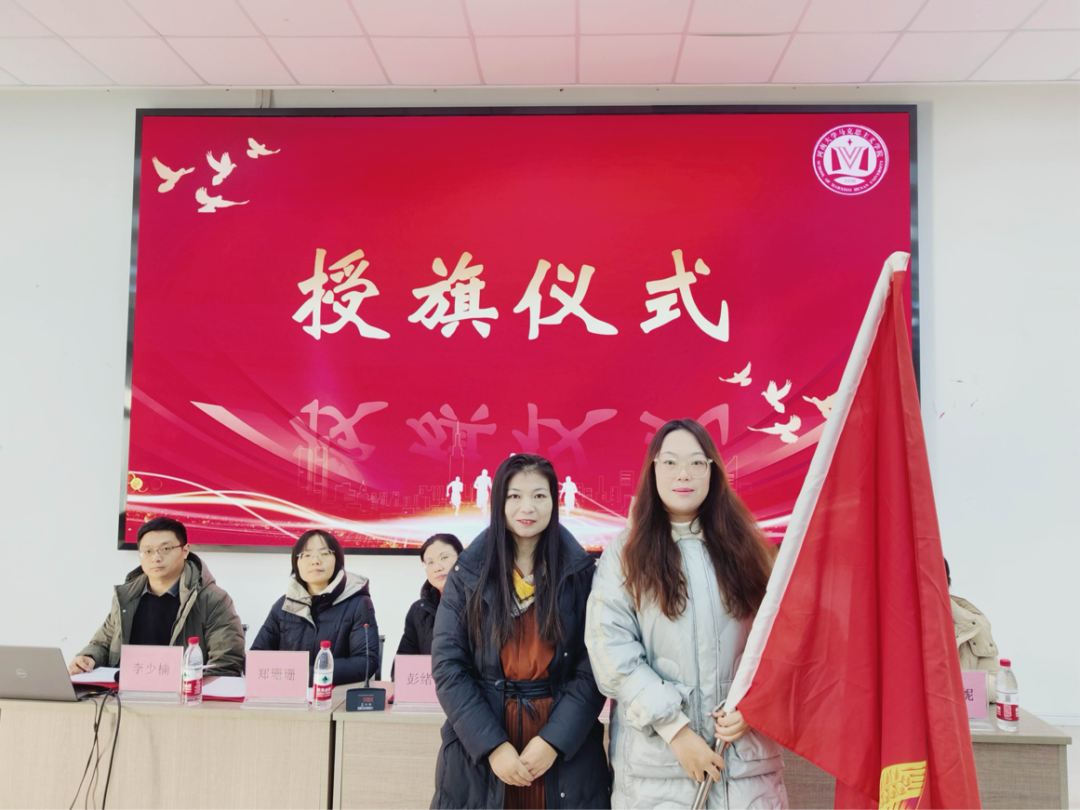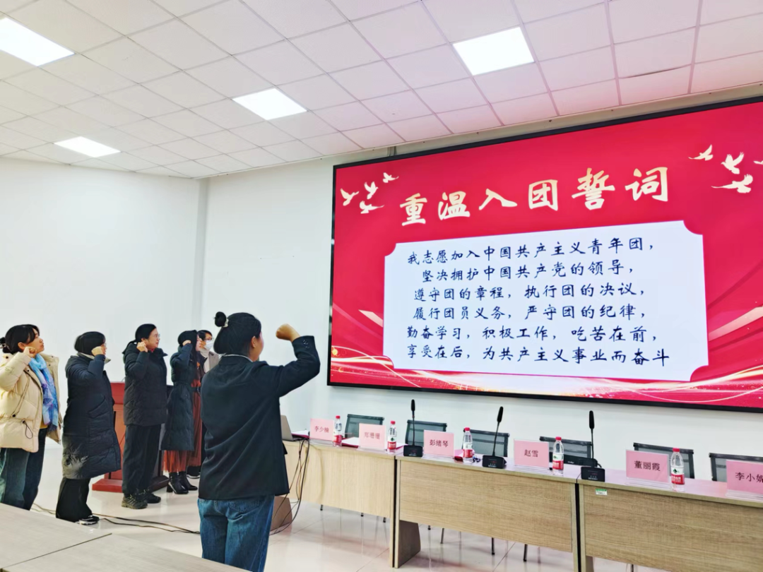 仪式最后,赵雪向第六期学员代表牛笛授旗。学员代表王宇华带领参会人员重温入团誓词,感悟初心,牢记使命,砥砺前行。