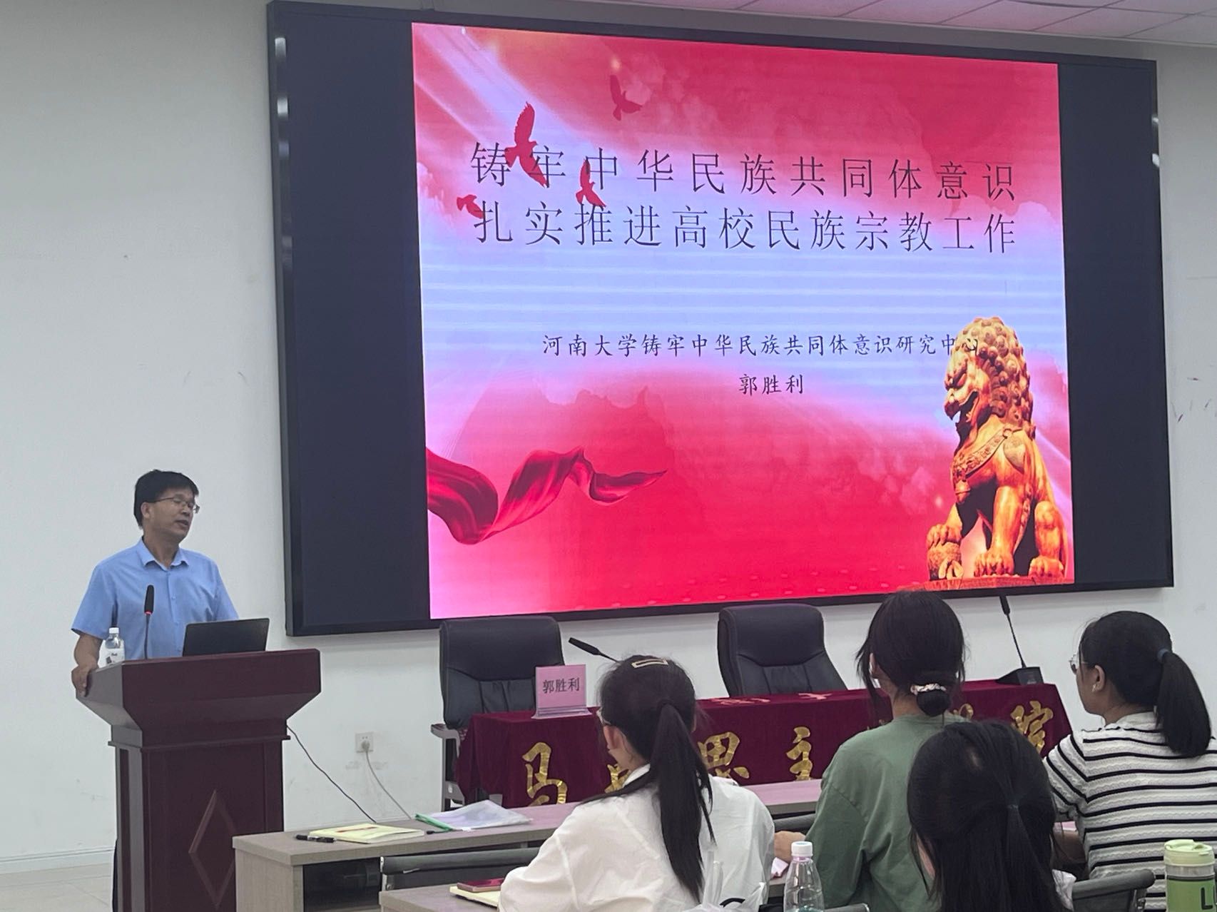 9月8日上午10点,必赢242net官网铸牢中华民族共同体意识研究中心教授郭胜利老师作题为《铸牢中华民族共同体意识,扎实推进高校民族宗教工作》的民族团结和宗教政策教育专业讲座,带领新生学习《老员工中国特色社会主义民族宗教理论知识手册》,帮助员工树立马克思主义宗教观,与非法传教活动展开坚决斗争。