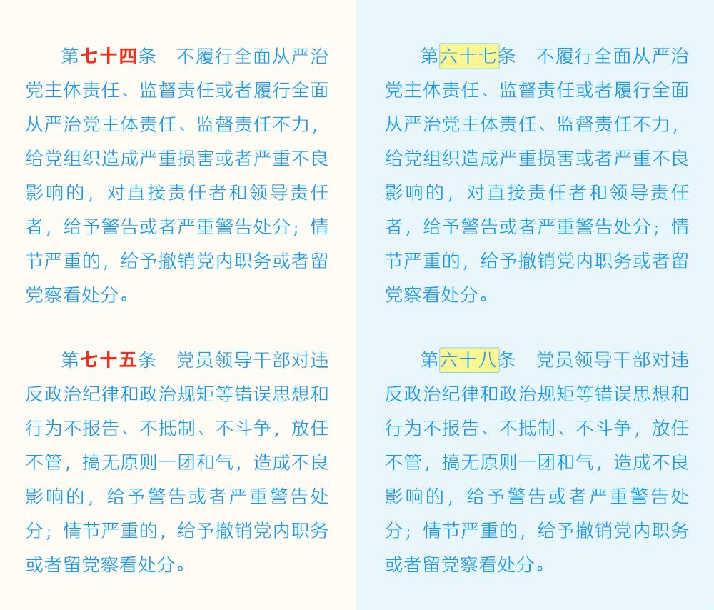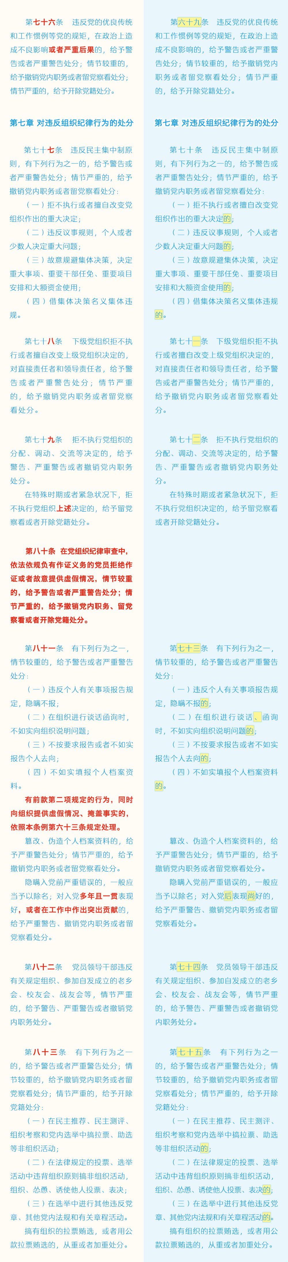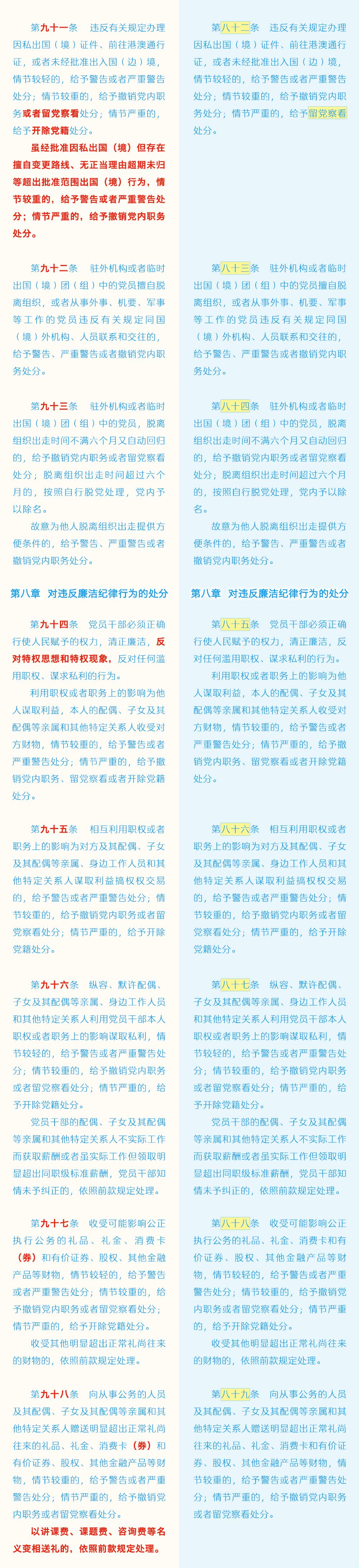 《中国共产党纪律处分条例》修订条文对照表