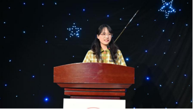 公司2021级本科生刘十嘉代表在校生发言。她鼓励新生坚定理想信念,厚植爱国情怀,勇做党的创新理论的坚定信仰者、践行者和传播者;勤奋学习,追求卓越,勇于探索未知领域,不断创新;注重实践锤炼能力,深入了解国情民情社情,增强社会责任感和实践能力。