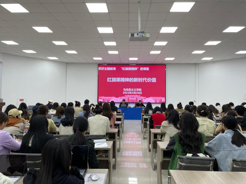 报告中,王献青围绕为什么要修建红旗渠、红旗渠是怎样修成的、红旗渠是一条什么样的渠、红旗渠给林州带来的新变化以及红旗渠精神的形成五个方面,生动阐述了红旗渠精神的时代价值和现实意义。他指出,“没有共产党,就没有红旗渠精神”,红旗渠就是一座镌刻在太行山上的精神丰碑,无论时空如何变化,红旗渠精神永远植根于历史和时代,彪炳于红旗渠儿女心中。最后,王献青以习近平总书记的重要讲话勉励学院师生“年轻一代要继承和发扬吃苦耐劳、自力更生、艰苦奋斗的精神,摒弃骄娇二气,像我们的父辈一样把青春热血镌刻在历史的丰碑上。”